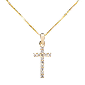 Our pave cross pendants dangle from a sturdy box link chain with a springring clasp. All are crafted from solid 14K gold with top grade AAAAA Cubic Zirconia stones. Lovingly wrapped in our quality presentation box, our pendants are the perfect gift for a loved one, or will make a great addition to your gold jewelry collection!