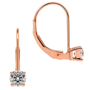 A classic pair of lever back earrings showing off stunning princess cut Cubic Zirconia (CZ) stones totaling 1.0 carats (.50 carat each earring) measuring 4.4 mm diameter. Top Quality Grade AAAAA CZs look just like real diamonds that cost thousands of dollars. They are professionally set in a heavy basket setting with secure lever-back fastenings, all crafted from solid 14K Rose Gold, with no other metals mixed (not plated or filled). This beautiful pair of earrings is elegantly presented in a deluxe black velvet box. They will make a perfect gift for a loved one or for yourself!