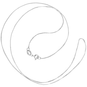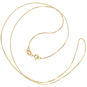 The box link chain is known for it's link strength and beautiful sheen encircling the neck, ending in a spring ring clasp. With more gold per inch than any other chain link style, it appears delicate, but is amazingly sturdy enough for daily wear.
