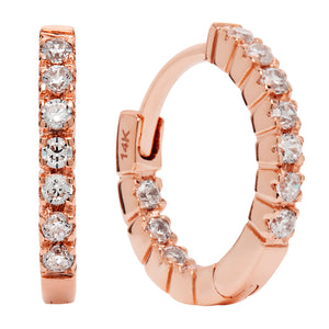 14K Solid Gold and Cubic Zirconia Tiny Huggie Hoop Earrings