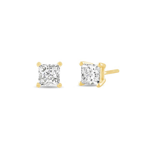 14K Solid Gold Princess Cut Cubic Zirconia Earrings