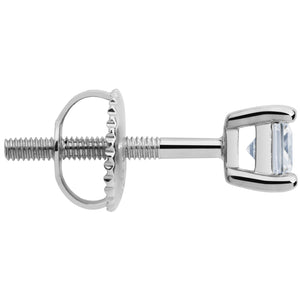 14K Solid White Gold SINGLE Stud Earring | Princess Cut Cubic Zirconia | Screw Back Post | .29 Carat