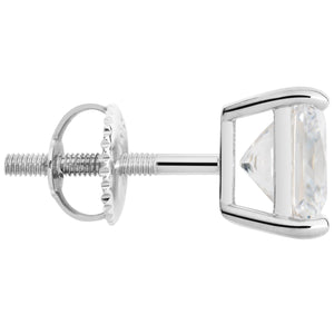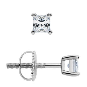 14K Solid White Gold | Princess Cut Cubic Zirconia SINGLE Stud Earring | 1.5 Carat | Screw Back Post