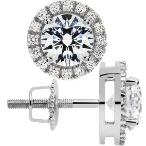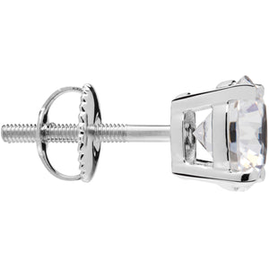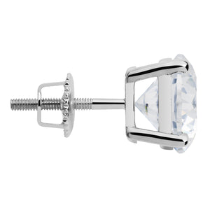 14K Solid White Gold | Round Cut Cubic Zirconia Stud Earrings | 2.0 CTW Bezel Set | Screw Back Posts