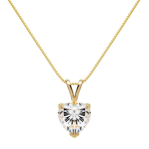 All of our pendants are professionally set in a heavy basket setting and dangle from a sturdy box link chain with a springring clasp. All are crafted from solid 14K gold (never plated or filled) with top grade AAAAA Cubic Zirconia stones. Lovingly wrapped in our quality presentation box, our pendants are the perfect gift for a loved one, or will make a great addition to your gold jewelry collection!